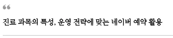 다양한 장점을 가진 네이버 예약 도입, 더 이상 미루지 마시고 더욱 많은 신환들이 편하게 이용할 수 있도록 진행하시기 바랍니다.