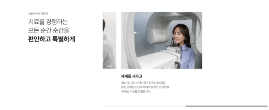 첫 화면은 환자가 병원에 대한 첫인상을 결정하는 공간입니다. 단 몇 초 안에 관심을 끌지 못하면 이탈 확률이 높습니다. 예를 들어, 세렉 장비로 당일 충치 치료가 가능한 치과의 경우 단순히 "빠른 충치 치료"라고 쓰는 것보다, "충치 치료, 몇 번이나 오셨나요? 저희는 시간을 선물해 드립니다."라는 메시지가 훨씬 강력합니다.