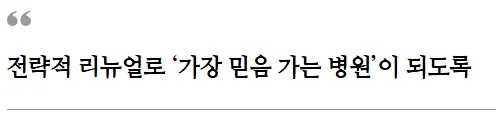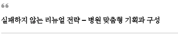 가장 많은 체류시간을 기록하는 의료진 프로필 페이지조차도 단순 약력 나열로만 구성된 곳이 많습니다. 홈페이지에는 원장님의 치료 철학, 진료에 대한 진정성, 환자에게 어떤 가치를 전달하고자 하는지 등 병원의 ‘이야기’가 담겨야 합니다. 콘텐츠는 스토리 기반으로 구성되어야 하며, 그 스토리가 환자에게 공감과 신뢰를 줄 수 있어야 부산병원홈페이지리뉴얼을 할 때 홈페이지의 기능을 제대로 수행하는 것입니다.
