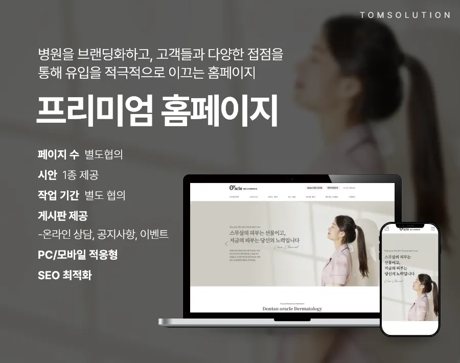 홈페이지는 환자에게 병원의 첫인상을 전달하는 온라인 공간입니다. 소셜미디어나 블로그, 유튜브 등 광고는 많지만 결국 환자들이 마지막으로 확인하는 곳은 홈페이지입니다. 여기서 신뢰가 형성되어야 내원이 이루어집니다. 탐솔루션은 홈페이지 기획과 디자인, 콘텐츠 작성, 사진 촬영까지 병원 마케팅의 전 과정을 통합적으로 진행합니다. 단순히 예쁜 홈페이지가 아닌, 병원의 방향성과 스토리를 녹여낸 인천병원홈페이지제작 합니다.