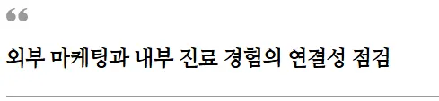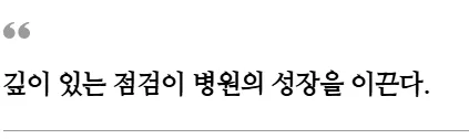 또한 가격 경쟁에 쉽게 끌려가는 것 역시 경계해야 합니다. ‘더 싸게’보다는 ‘더 낫게’, ‘더 가치 있게’라는 방향으로 경쟁력을 설계해야만 장기적인 병원 성장을 이끌 수 있습니다. 진정한 경쟁력은 가격이 아니라, 가치에 기반해야 하기 때문입니다.