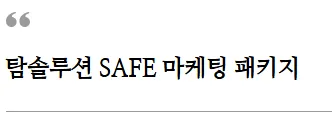이 모든 고민을 해결하기 위해 탐솔루션에서는 SAFE 마케팅 패키지를 제안 드립니다. SAFE는 Strategy(전략), Analysis(분석), Flow(흐름), Execution(실행)의 약자입니다.