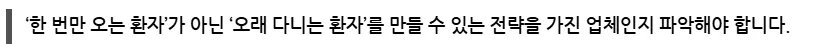 성과를 내는 마케팅은 병원의 내부를 깊이 들여다보고, 차별화된 강점을 바탕으로 병원만의 스토리를 만들어가는 일입니다. 마케팅의 출발은 콘텐츠고, 콘텐츠의 시작은 기획입니다. 병원을 잘 이해하고, 원장님의 이야기를 콘텐츠로 풀어낼 수 있는 기획력이 가장 중요한 기준이 되어야 합니다.