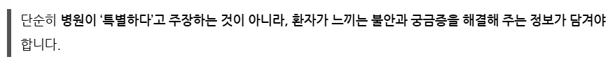 따라서 온라인 콘텐츠는 단순한 광고 수단이 아니라 병원 신뢰도를 높이는 ‘첫인상’이 됩니다. 우리 병원의 강점을 자연스럽게 녹여낸 온라인 콘텐츠가 필요한 이유입니다.