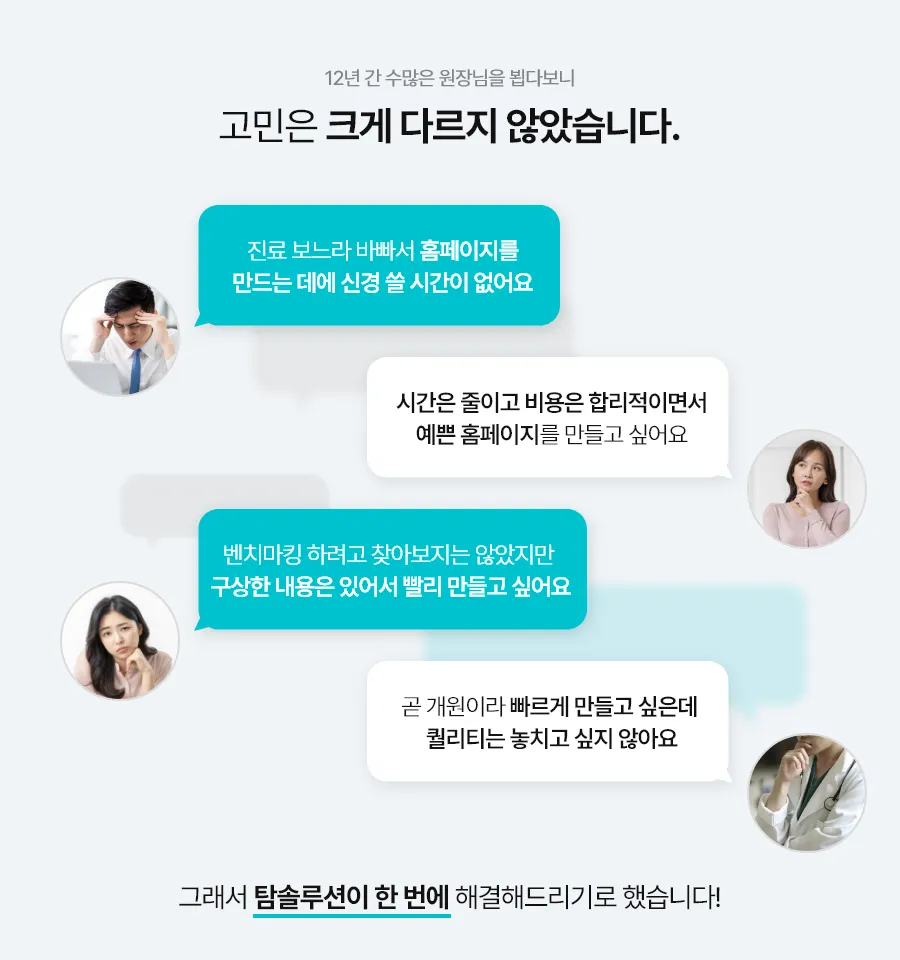 진료 보느라 시간이 없으시다고요? 홈페이지 가격이 높아서 고민되신다고요?