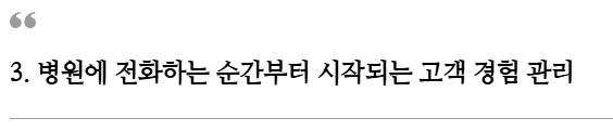 그럼 리뷰 관리를 어떻게 하면 좋을까요? 실제로 환자들은 병원에 가기 전 예약 전화를 거는 순간부터 고객 경험 관리는 시작됩니다.