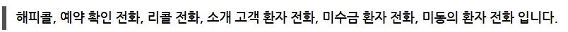 위의 환자들에게 직접 전화를 해주면 좋습니다. 원장님 진료 후에 반드시 확인을 한번 더 해야 하는 경우도 해피콜을 진행해 주셔야 합니다.