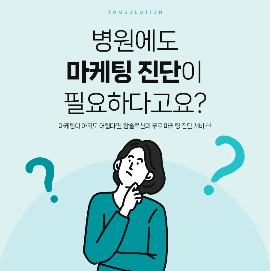 마케팅 진단은 단순히 문제를 파악하는 것이 아니라, 우리 병원의 잠재력을 깨우는 과정입니다. 현재 우리 병원의 강점이 무엇인지, 어떤 점을 개선해야 하는지, 어떤 마케팅 전략이 가장 효과적인지 명확히 알고 싶으시다면 탐솔루션 마케팅 진단을 신청하세요.