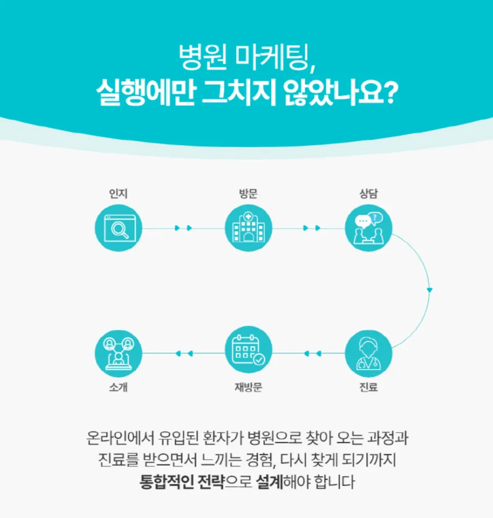 선순환 구조: 외부 마케팅에서 환자를 유입시키면 내부에서 단단히 응대해줄 때, 브랜딩이 완성되며 선순환이 이루어집니다.